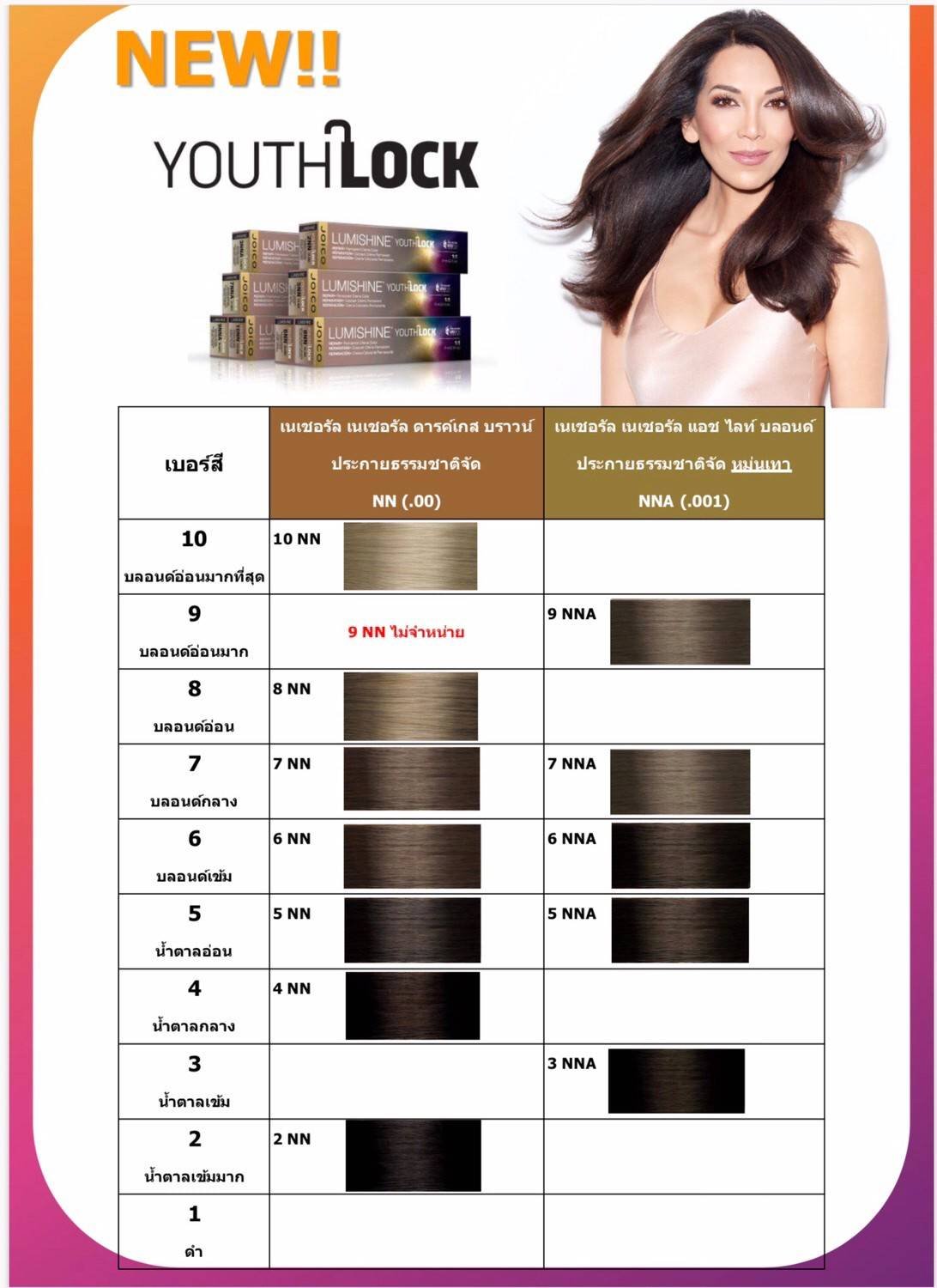 **** สำหรับสาว ๆ ที่ต้องการปิดหงอกแต่อยากเป็นแนวแฟชั่น ให้เลือกกลุ่ม Youthlock เป็นสีฐาน และผสมร่วมกันสีแฟชั่นอื่น ๆ ได้เลยนะคะ จะทำให้มีเปอร์เซนต์การปิดผมขาวได้ดีกว่าค่ะ****