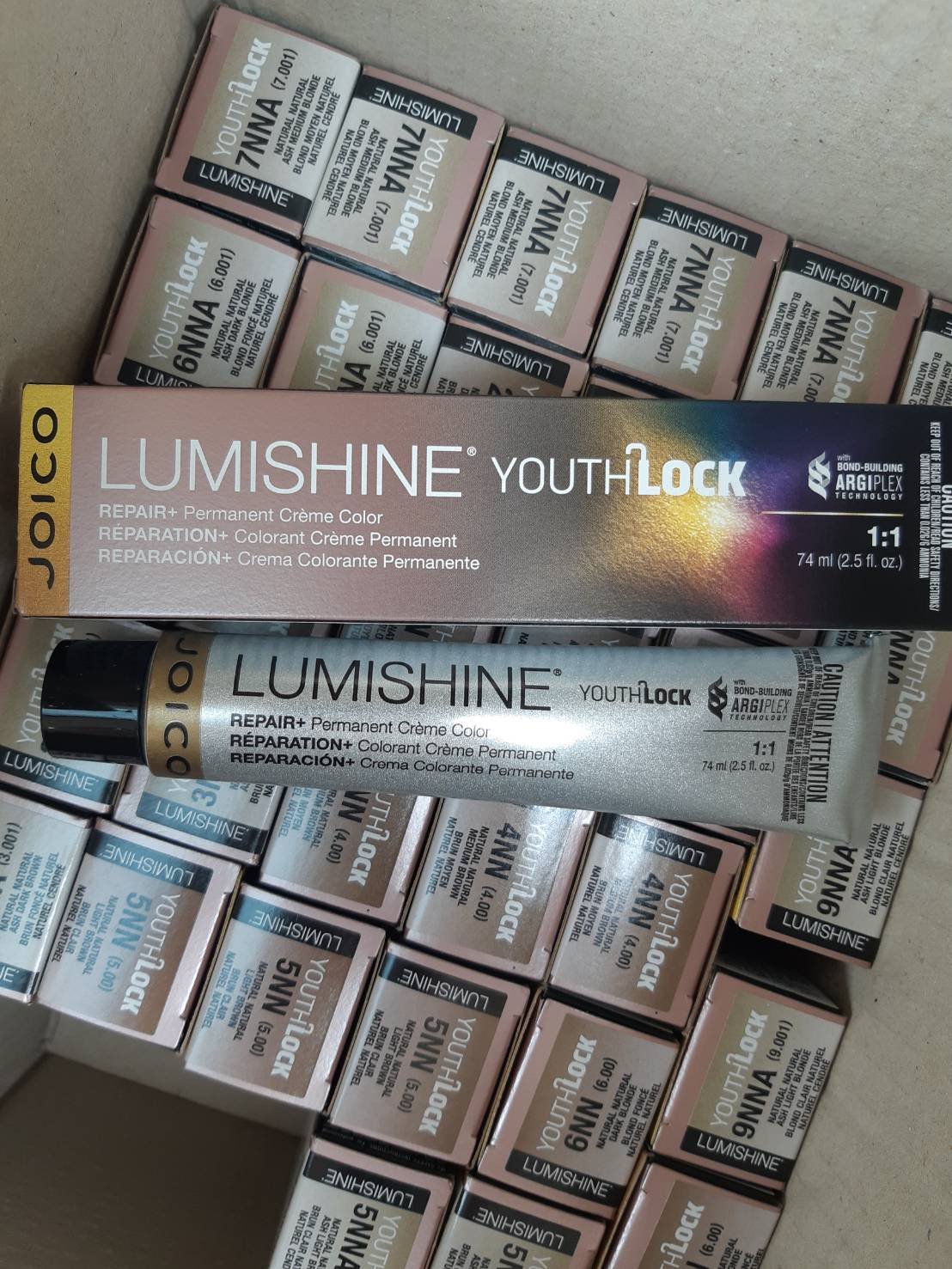 JOICO LUMISHINE YOUTHLOCK Repair - Permanent Creme Color (ลูมิชายน์ ยูธล็อค) ตัวช่วยปิดผมขาว ล็อคความอ่อนเยาว์ให้เส้นผมกลับมาสวยงามอย่างเป็นธรรมชาติ ขนาด74มล พร้อมตัวผสมสี 74มล