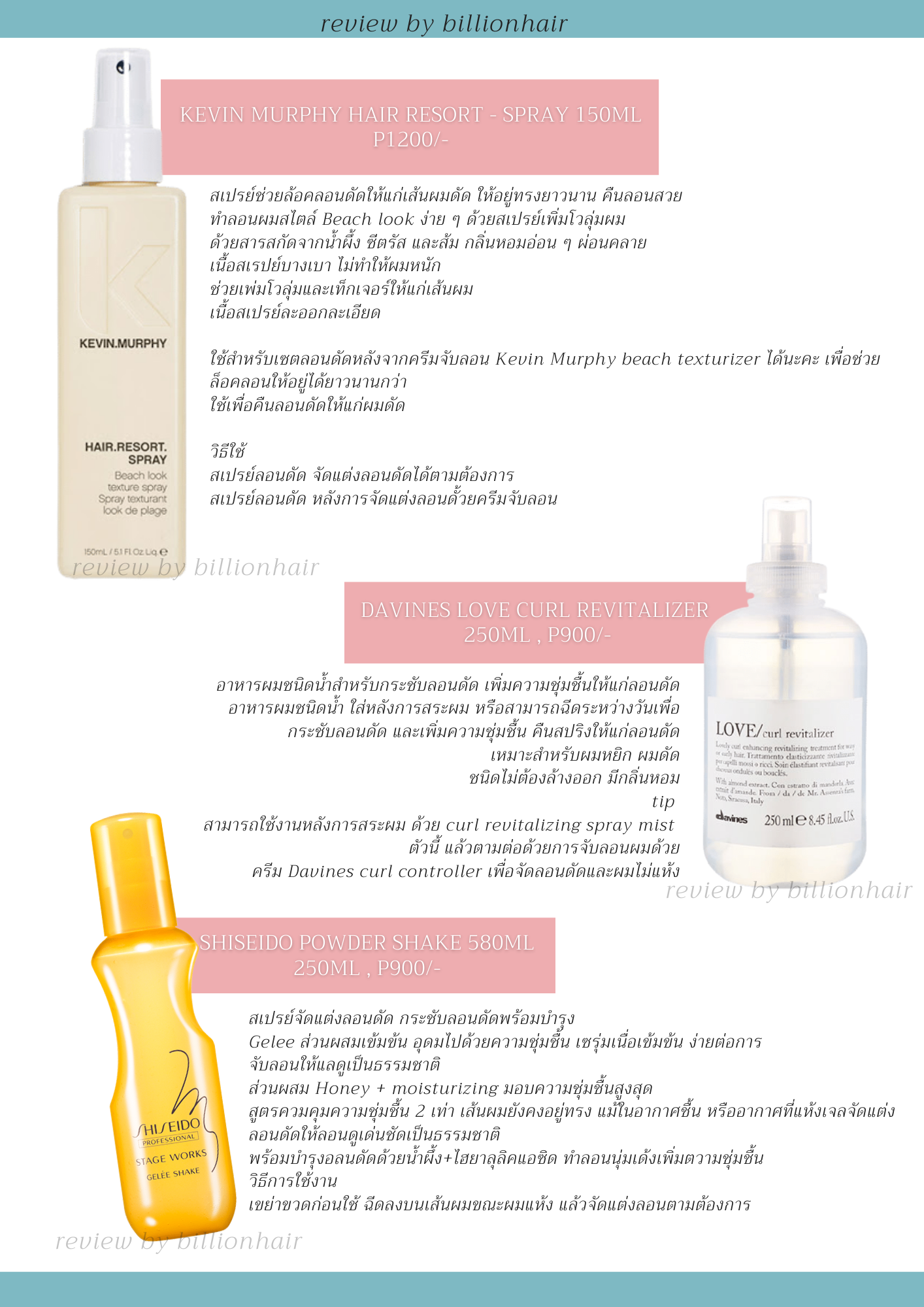 เป็นไงบ้างคะ มีตัวไหนโดนใจกันบ้างมั้ยเอ่ย ในรีวิวหน้าจะมีกลุ่มผลิตภัณฑ์ที่เหมาะสำหรับบำรุงเส้นผมดัดมารีวิวด้วยน้า อาทิ เช่น